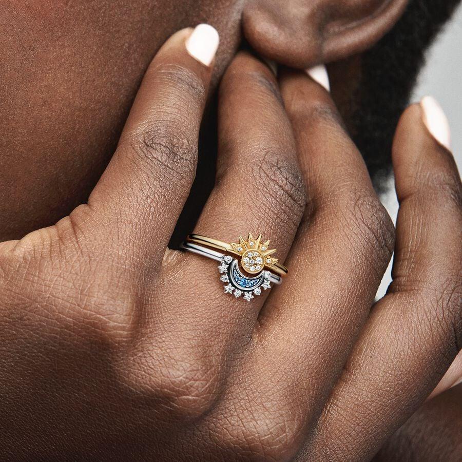 Pandora Celestial Blue Sparkling Moon Anel Mulher