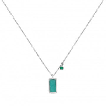 Colar Kiwi é um colar com uma malha delicada acompanhada de dois pendentes: uma pedra central amazonita rectângular e uma pequena ónix verde redonda. Uma peça elegante e colorida, ideal para o dia a dia. Podes combinar este modelo com outras peças para o mix and match perfeito. Pedra Amazonita / Ónix Verde