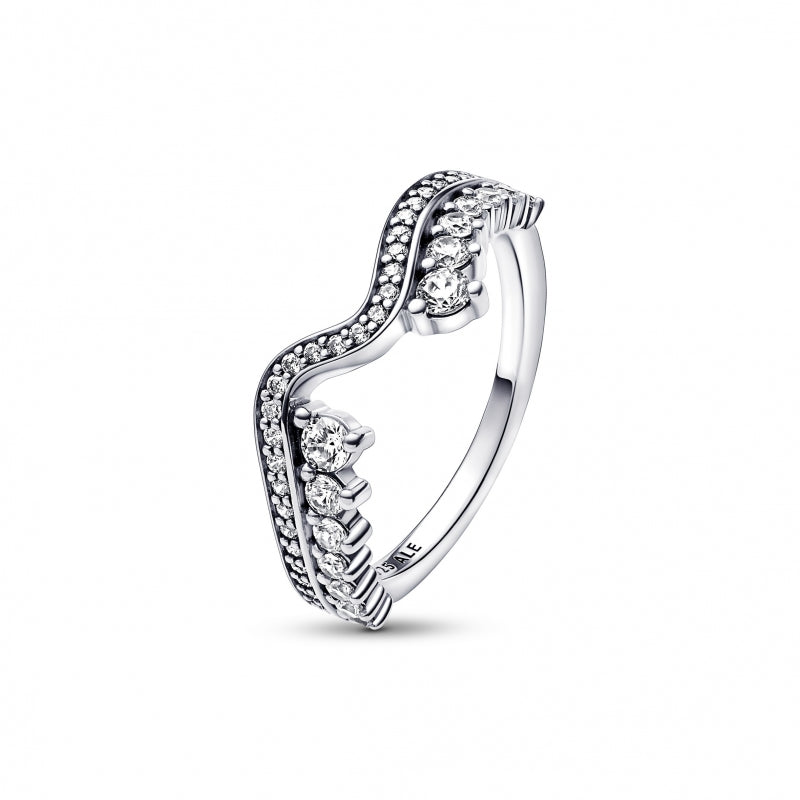 Pandora Sparkling Asymmetric Wave Anel Mulher