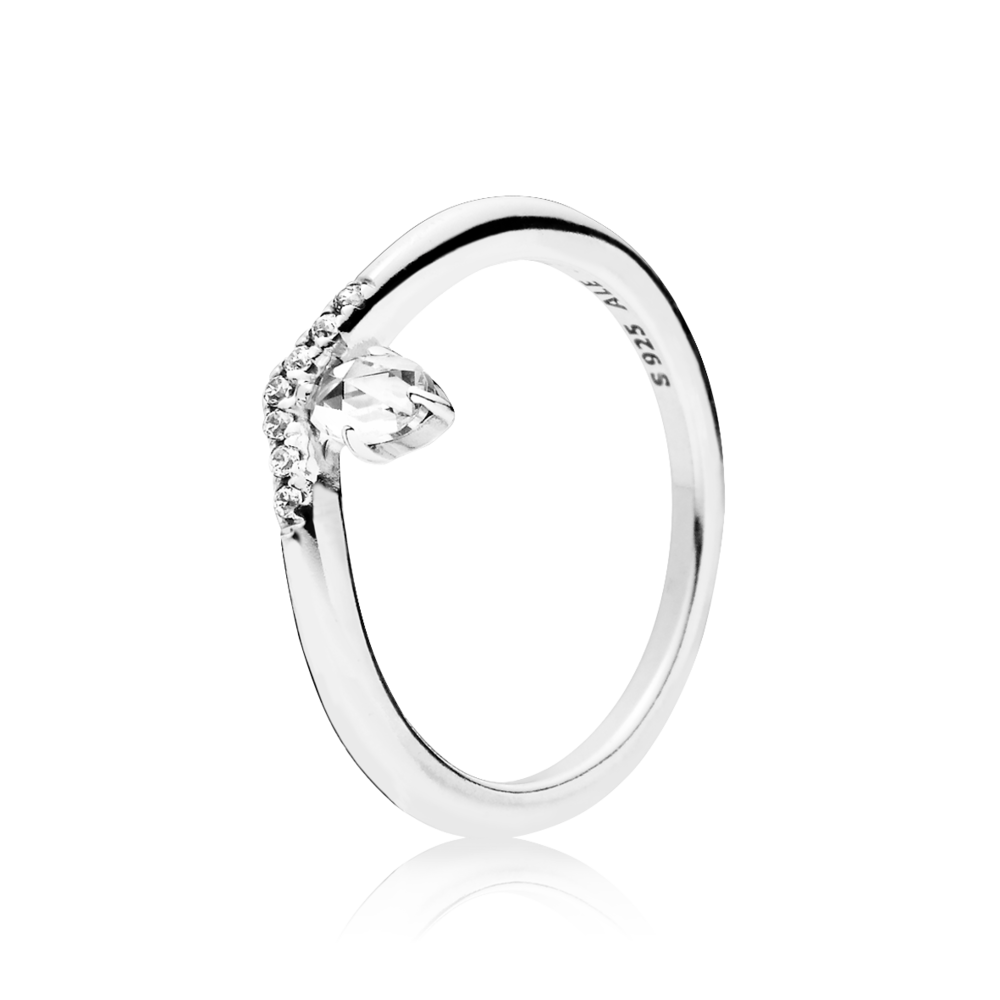 Pandora Sparkling Wishbone Heart Anel Mulher